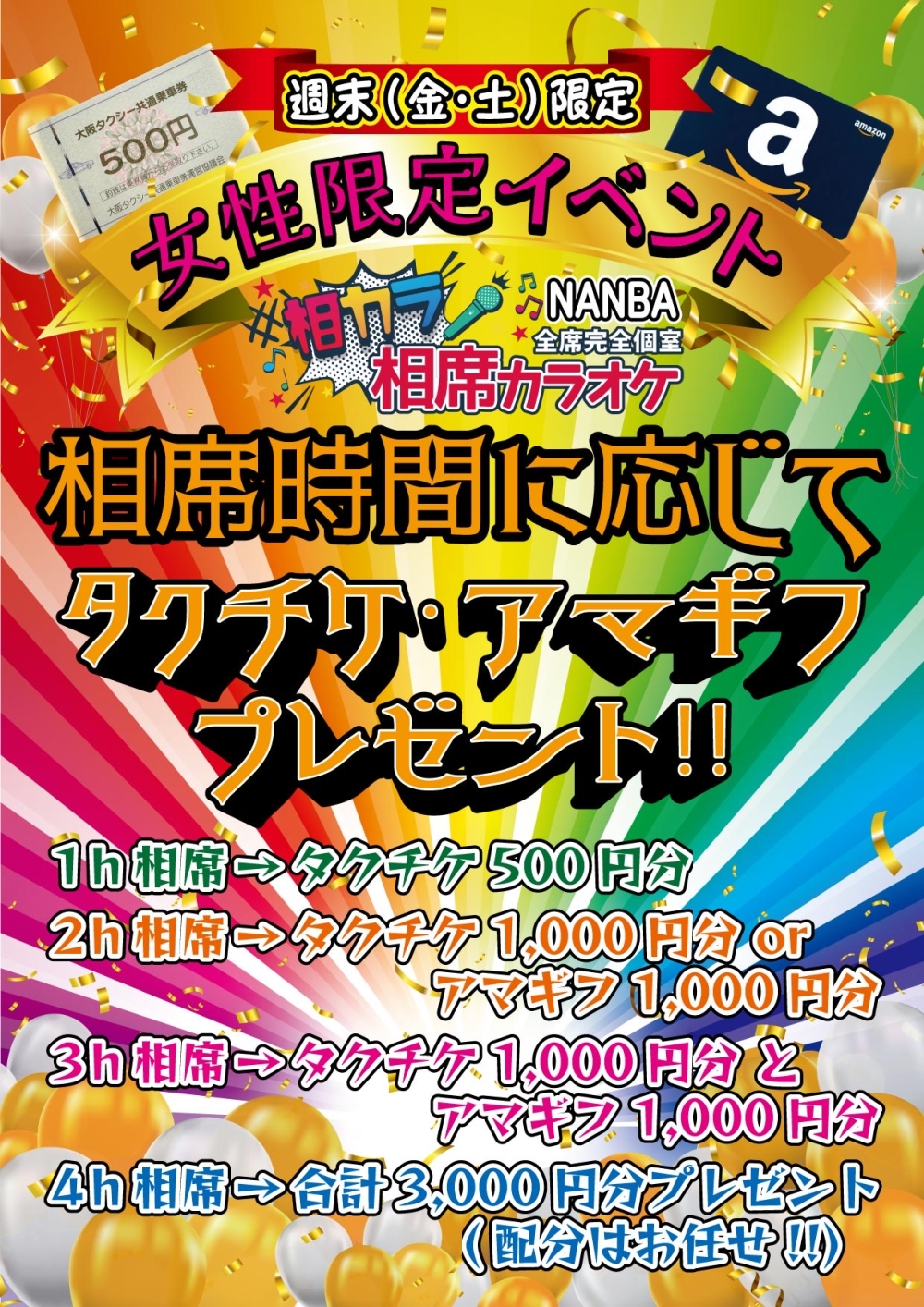 相カラでは週末に女性限定でイベントを行います(*^◯^*)
